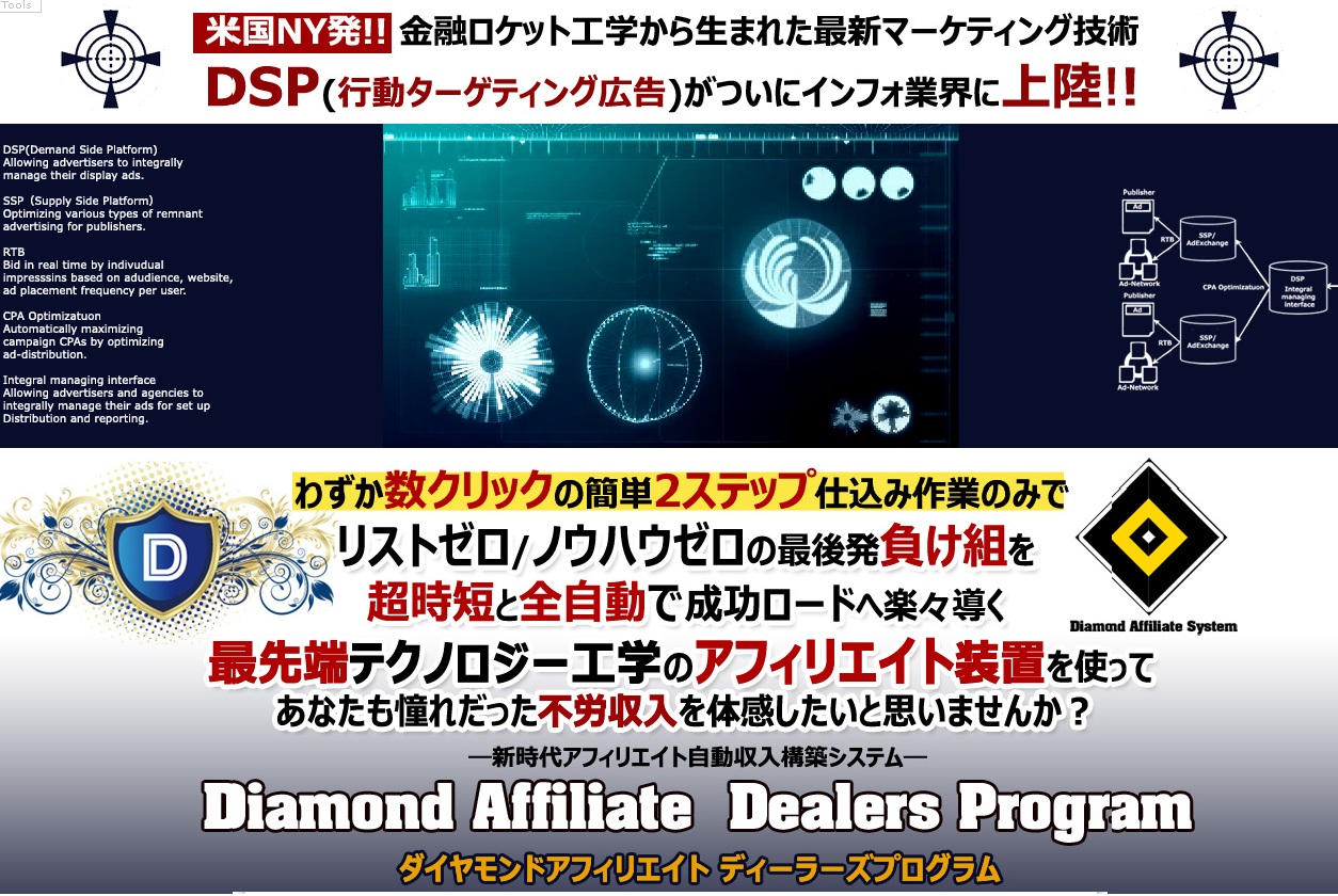 わずか合計5クリックで収入発生!金融ロケット工学から生まれた最新マーケティング技術を使って超時短と全自動で成功ロードへ導く「ダイヤモンドアフィリエイトシステム(DAS)」