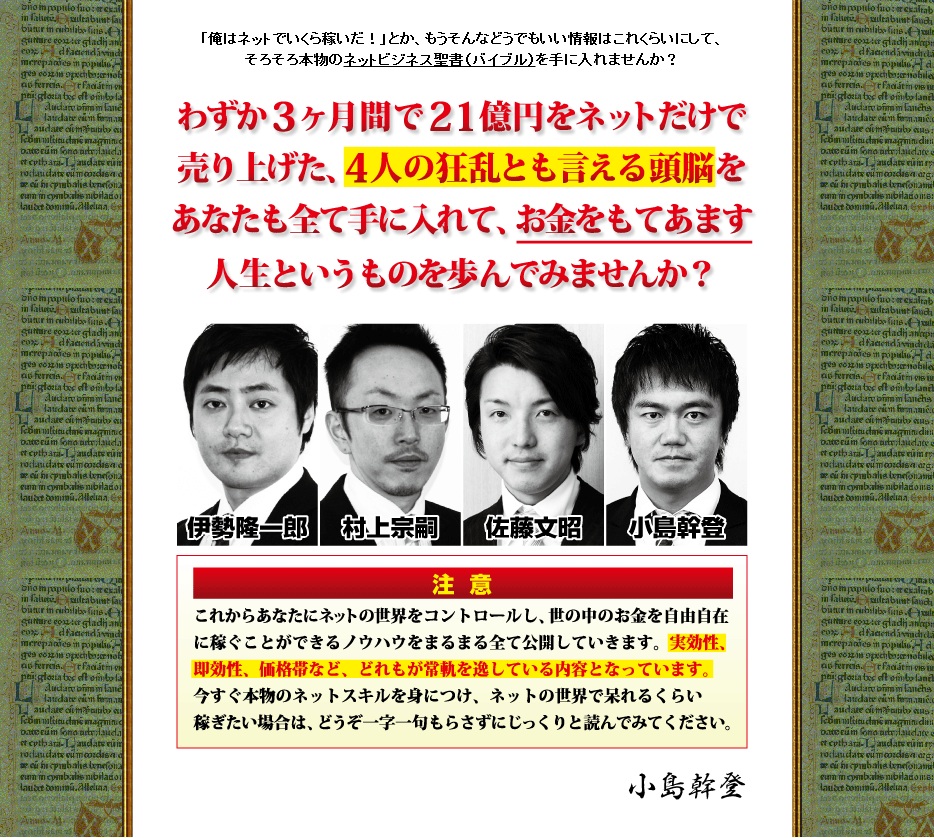 今後のネット界の基準となるノウハウを少しでも見てみたい、そういう気持ちになったのならどうぞ今すぐお申し込みください。