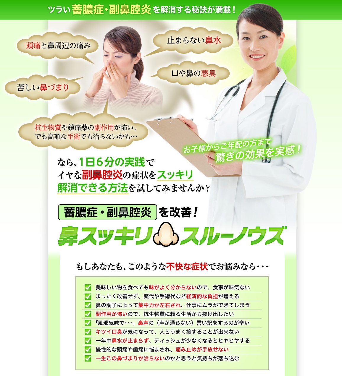 副鼻腔炎・蓄膿症を改善!「鼻スッキリ!スルーノウズ」副鼻腔炎と蓄膿症をお悩みの方に。