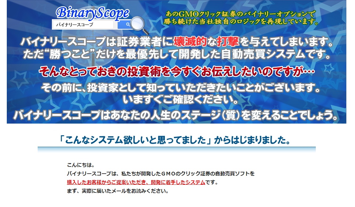 >> バイナリースコープ 禁断の自動売買ソフト <<