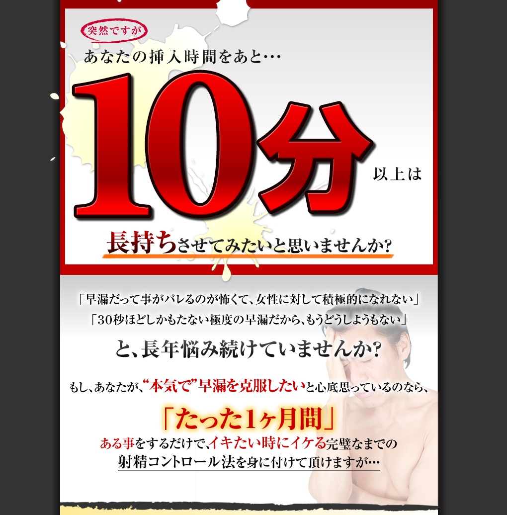 早漏を克服して、セックスにおける自信を得たいと"真剣に"お考えなら、どうぞ1歩踏み出してみて下さい。