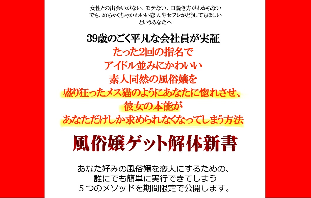 「風俗嬢ゲット解体新書」の5つのメソッドが、